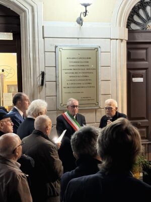 Alla cerimonia hanno preso parte il sindaco Francesco Aiello, l’assessore alla Cultura Paolo Monello e il deputato regionale Nello Di Pasquale. Particolarmente toccanti sono state le parole del presidente della società, Carmelo Traina, che ha parlato anche a nome del consiglio direttivo e di tutti gli iscritti, sottolineando il valore storico e culturale della figura di Cancellieri.