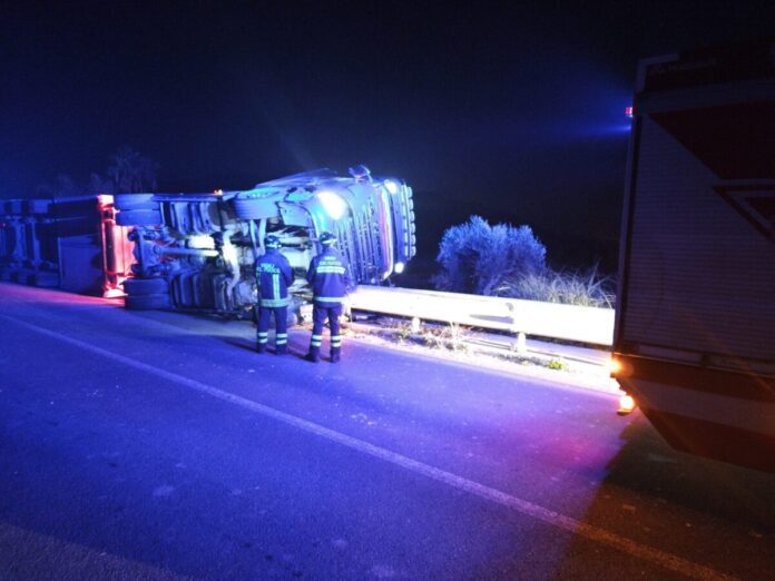 Vigili del Fuoco di Modica intervenuti alle ore 21:20 circa di stasera sulla sp 49 Ispica Pachino, per un incidente stradale autonomo che ha interessato un tir carico di ortaggi. Nell’incidente l’autista è rimasto illeso. Personale Vvf intervenuto ha provveduto alla messa in sicurezza dell’automezzo. Si attende che il carico venga scaricato per procedere alla rimozione del mezzo pesante coinvolto con l’ausilio di autogru del Vigili del Fuoco, nel frattempo intervenuta dalla centrale di Ragusa. Sul posto i Carabinieri per i rilievi di competenza.