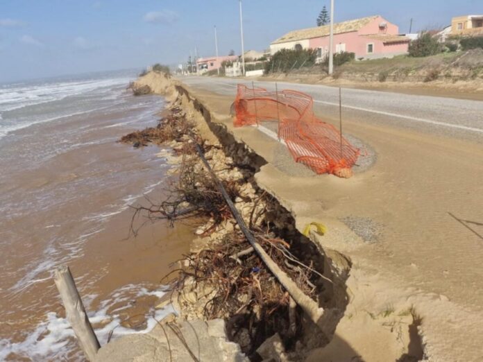 La situazione è peggiorata con ulteriori mareggiate registrate l’1 e il 13 febbraio 2026, che hanno provocato nuovi cedimenti, in particolare nel tratto tra il km 7+430 e il km 7+830, dove il sistema dunale di protezione della strada è stato completamente eroso dal mare.