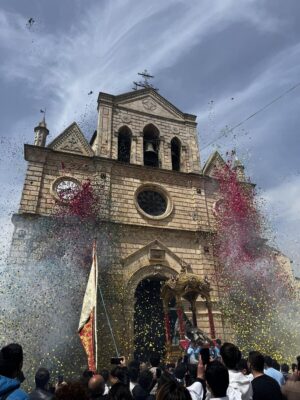 Il corteo ha poi fatto tappa presso Sant’Antonio “U Viecchiu” per la benedizione dei campi, rito che richiama le radici contadine del territorio, prima del rientro nella chiesa Madre. Ad accogliere il simulacro, il lancio degli “n’zarieddi”, momento suggestivo e partecipato che ha visto riunite generazioni diverse in un’unica, intensa emozione.